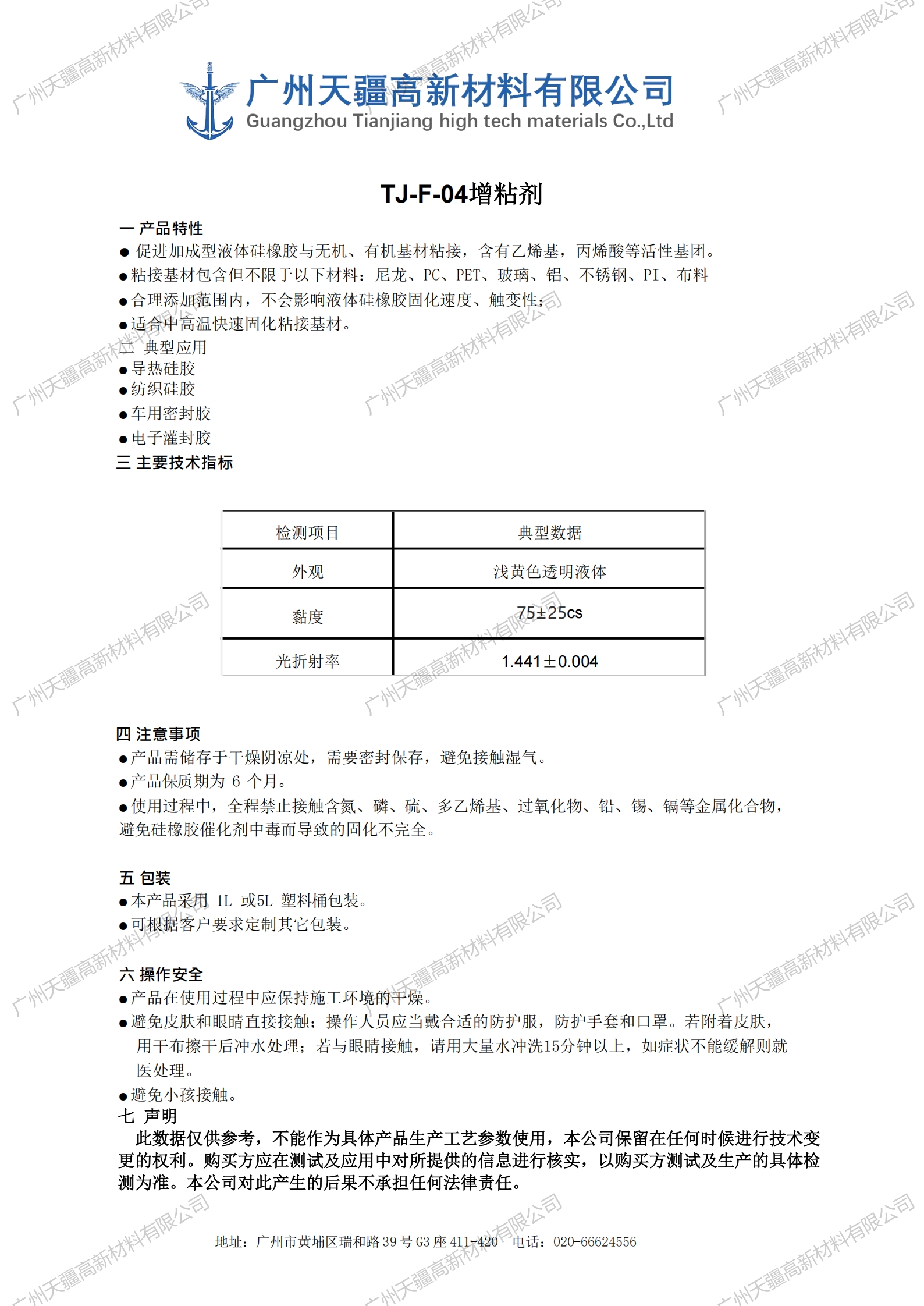 广州天疆高新材料有限公司是集研发、生产和销售硅橡胶及胶黏剂领域的锚固剂和有机硅特殊助剂的创新型高新技术企业.